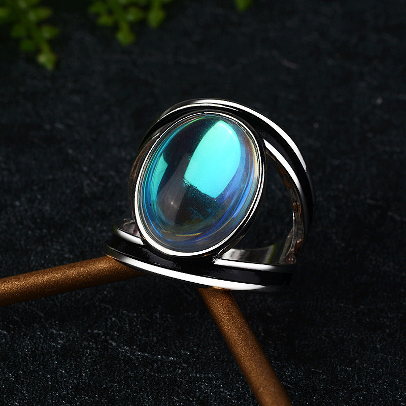Inlaid Colorful Moonstone Ring Epoxy Ring Female